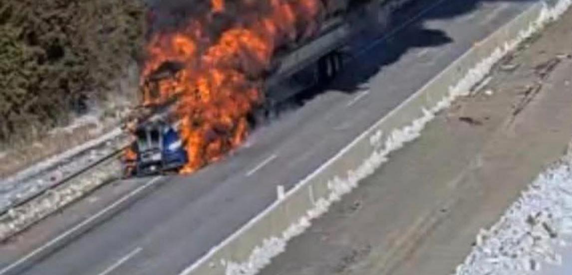 The tractor-trailer was hauling pallets of milk when it caught fire around 12:27 p.m. An estimated 7,000 gallons of milk spilled onto the roadway, prompting a hazardous materials response due to environmental concerns.