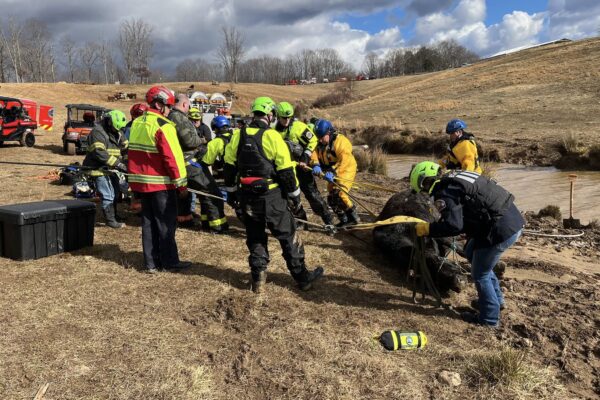 BEDFORD COUNTY, Va. — January 11, 2026 A large animal rescue operation was successfully completed Sunday on Diamond Hill Road after a cow became stuck …