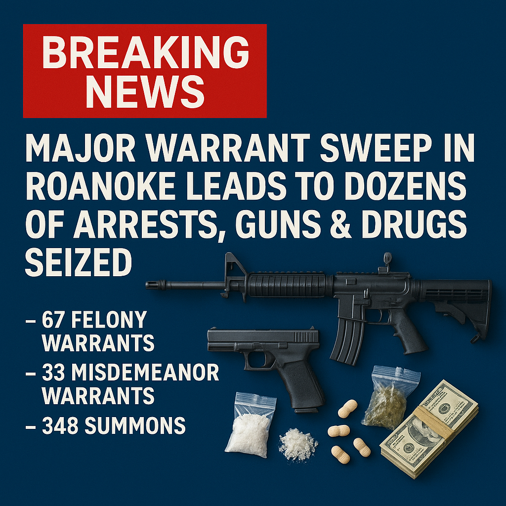 The Roanoke Police Department partnered with the U.S. Marshals Service Capital Area Regional Task Force to conduct a warrant operation in the city of Roanoke from Nov. 10, 2025, through Nov. 14, 2025.
