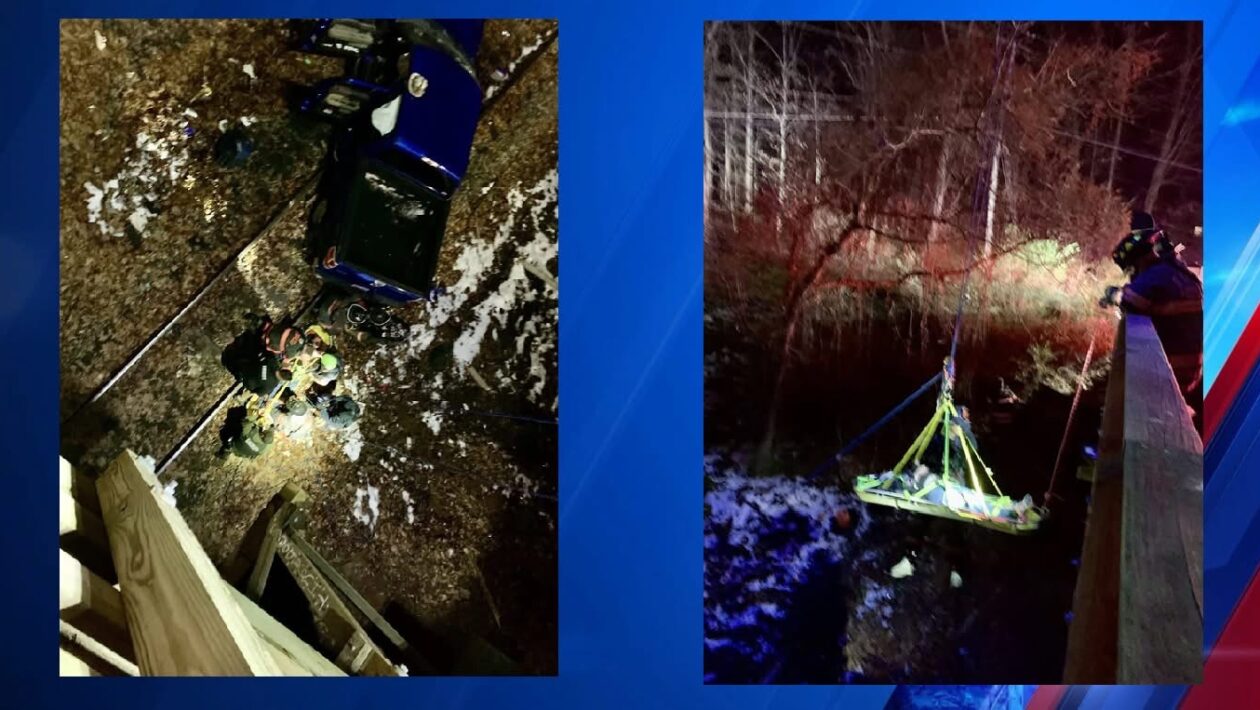 Pickup Truck Plunges Off Bridge in Bedford County, Driver Trapped on Railroad Tracks